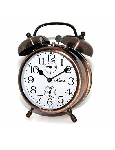 Budík Atlanta nepotřebuje baterie, stačí jej po pár dnech ručně natáhnout a budík funguje dál. Tenhle budík nedisponuje funkcemi jako je promítání aktuálního času na zeď, ani nemá rádio či jiné vymoženosti. Na oplátku Vás uspí klasickým tikotem a probudí stějným zvukem jakým budil před mnoha lety.