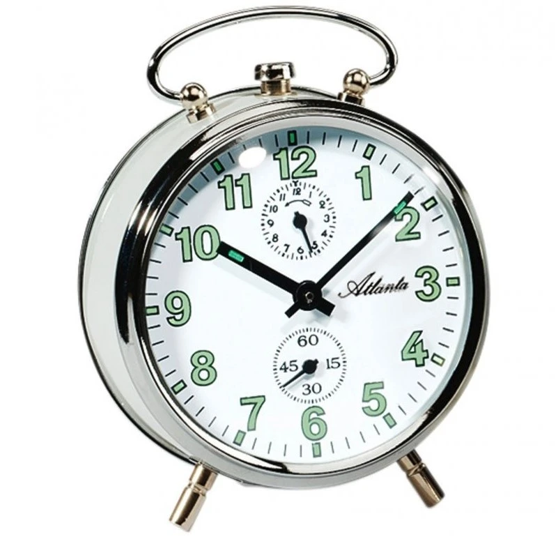 Budík Atlanta nepotřebuje baterie, stačí jej po pár dnech ručně natáhnout a budík funguje dál. Tenhle budík nedisponuje funkcemi jako je promítání aktuálního času na zeď, ani nemá rádio či jiné vymoženosti. Na oplátku Vás uspí klasickým tikotem a probudí stějným zvukem jakým budil před mnoha lety.
