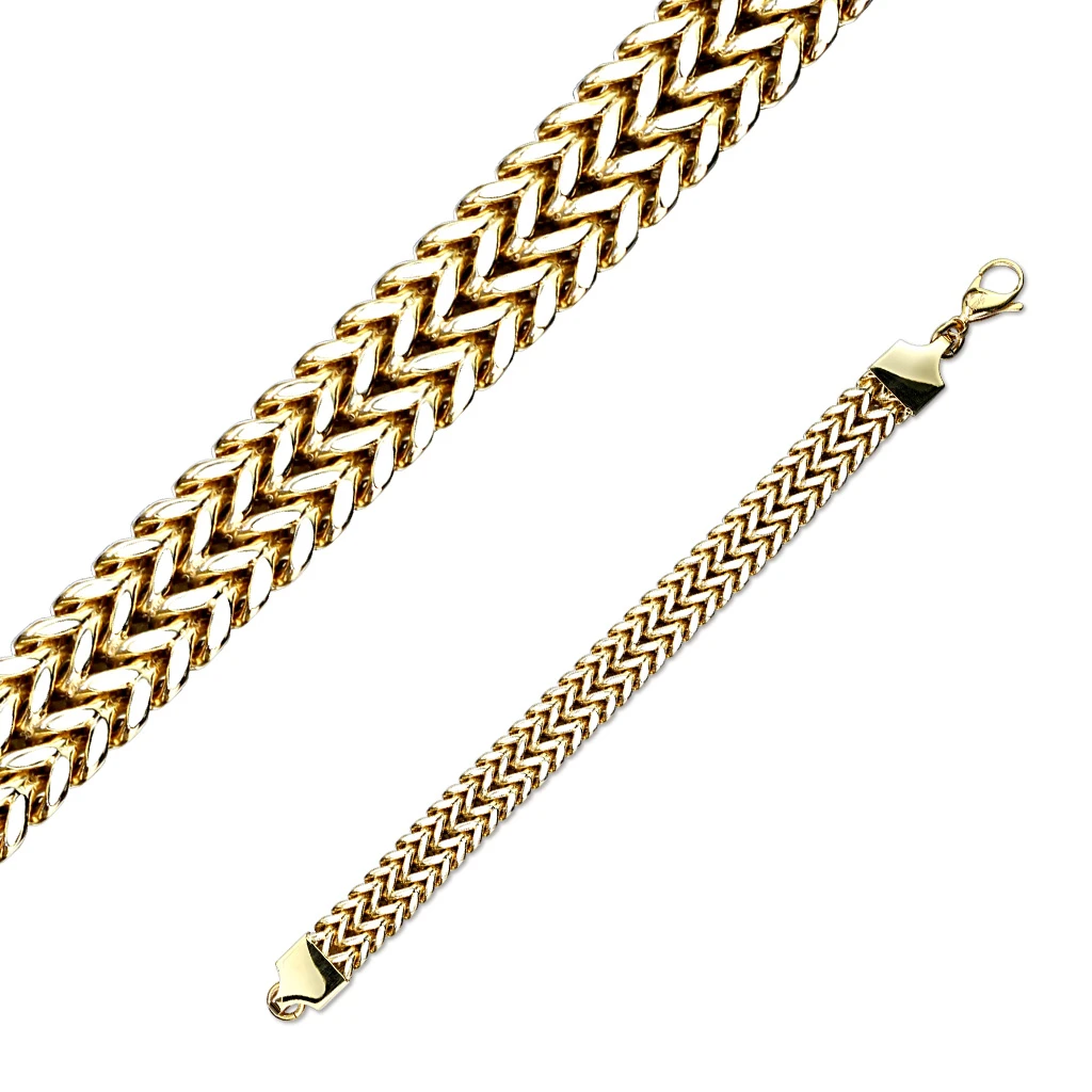 Dámský náramek na ruku z chirurgické oceli. Povrch náramku je leštěný pozlacený technologií PVD. Krásný dvouřadý náramek pro ženy široký 8mm. Zapínání náramku je karabinové.