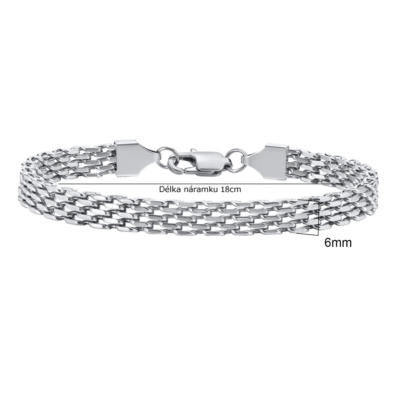 Náramek z chirurgické oceli pro ženy a dívky. Náramek vzor Bismark s leštěným povrchem. Náramek je široký 6mm. Délka náramku 18cm. Náramek má karabinové zapínání.