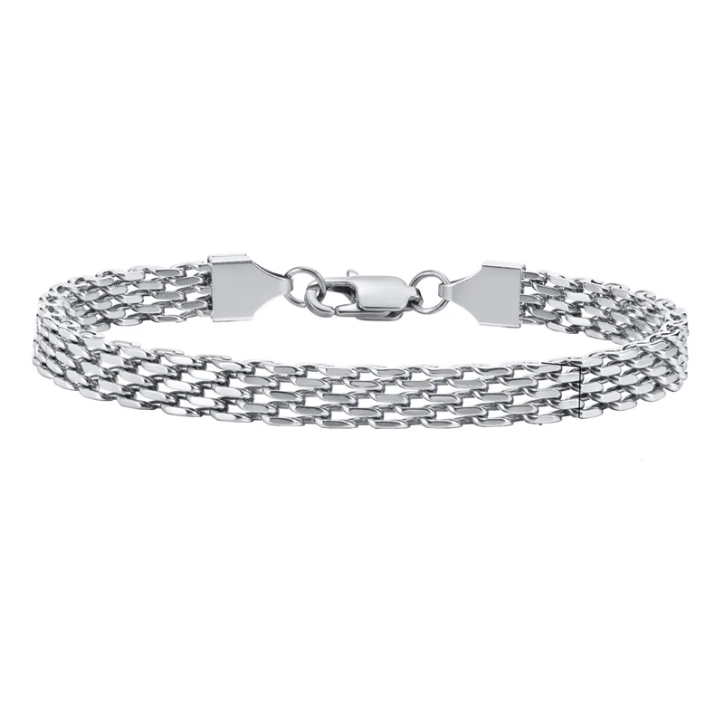Náramek z chirurgické oceli pro ženy a dívky. Náramek vzor Bismark s leštěným povrchem. Náramek je široký 6mm. Délka náramku 19cm. Náramek má karabinové zapínání.