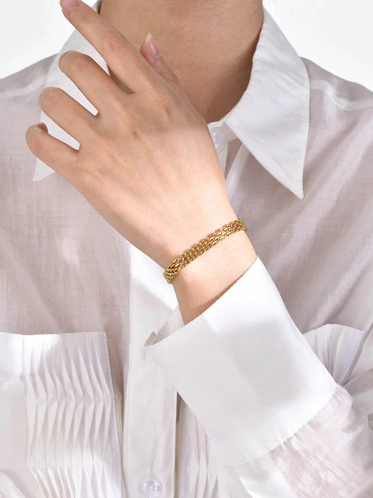 Ocelový náramek na ruku pro ženy a dívky. Náramky z chirurgické oceli jsou sále velmi vyhledávanými šperky. K přednostem ocelových náramkům patří především vlastnosti, které chirurgická ocel má. K těmto vlastnostem patří především odolnost proti poškození, barevná stálost, ocelové šperky neoxidují a nevyvolávají alergické reakce. Další předností šperků z chirurgické oceli je jejich příznivá cena při srovnání se šperky z drahých kovů.