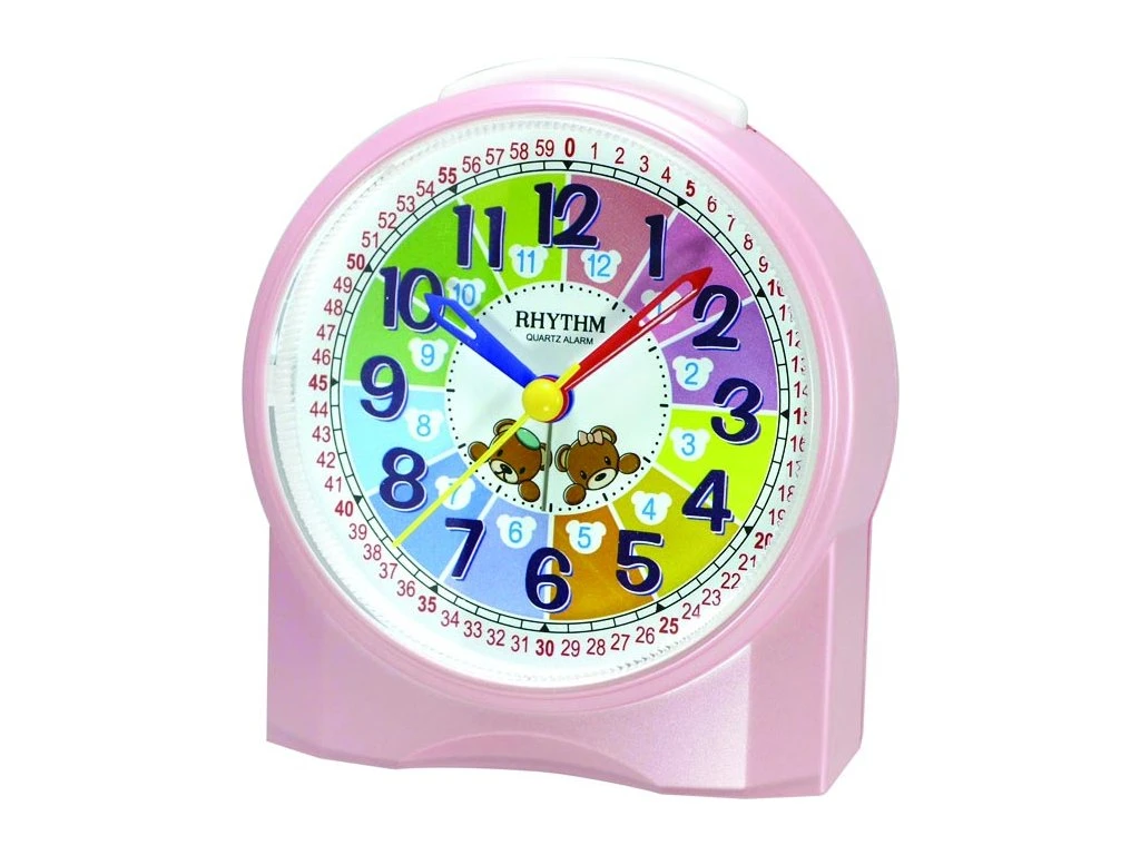 Dětský budík od výrobce hodinářského zboží Rhythm. Budík je dodávaný včetně baterie.
