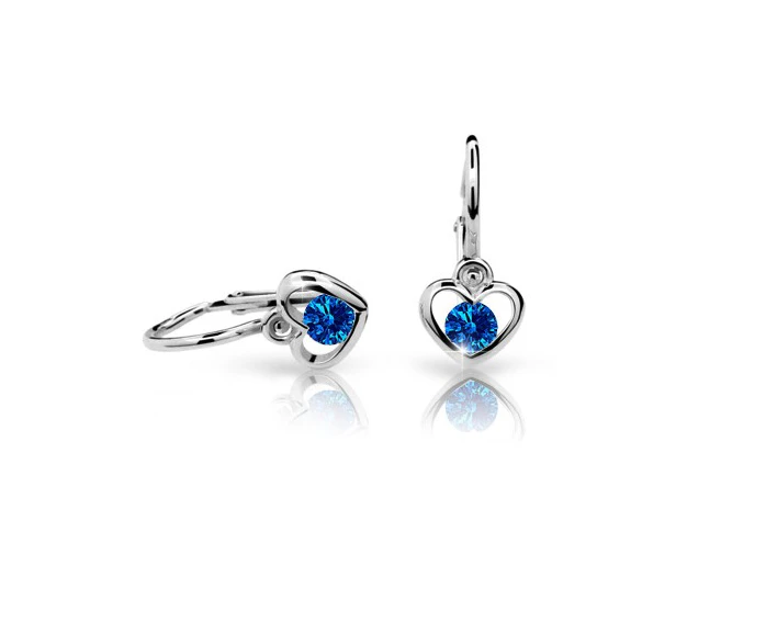 Dětské náušnice z bílého zlata srdíčka se zirkonem. Zlaté dětské náušnice se zapínáním na dětskou brizuru. Náušnicové zapínání "dětská brizura" zamezujeme snadnému rozevření zapínání a následné ztrátě náušničky. Rozměry náušniček naleznete zobrazené na podpůrné fotografii.