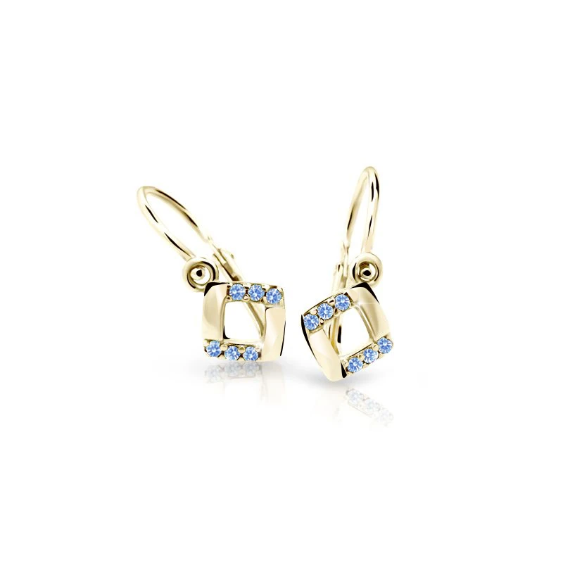 Náušnice pro děti ze zlata 585/000. Nádherné náušničky pro miminka se zapínáním na dětskou brizuru, která zabraňuje jejich snadnému otevření. Luxusní vzhled dětských náušnic je podtržený zářivými kamínky. Všechny dětské šperky od Cutie Jewellery jsou vyráběné České republice
