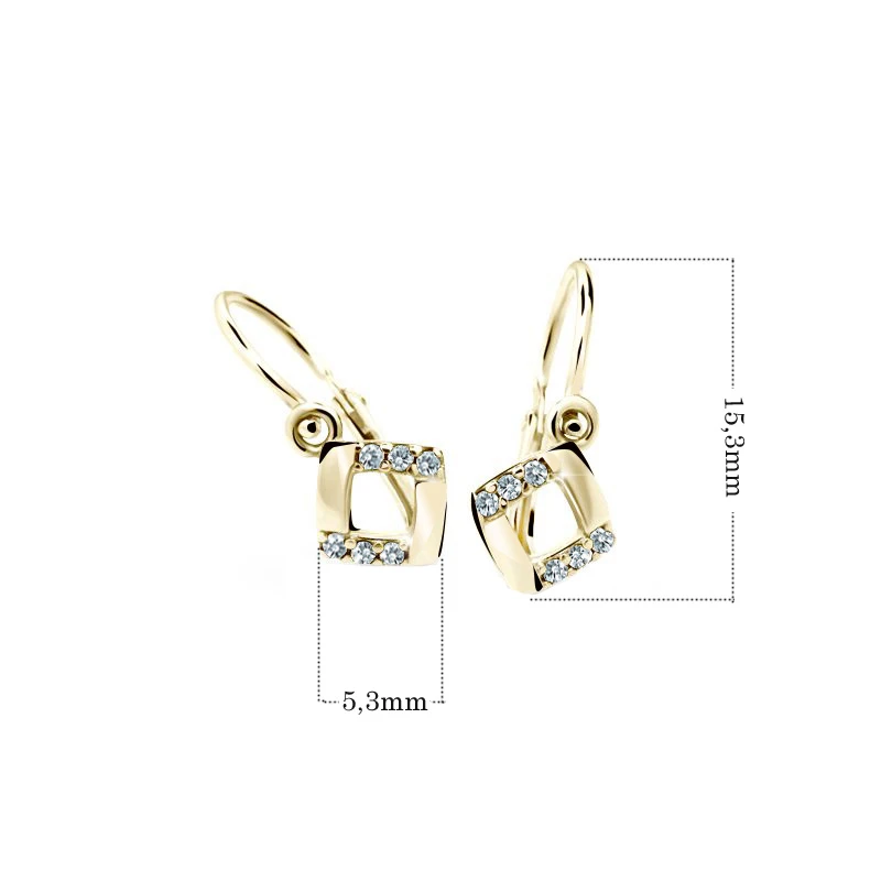 Dětské náušnice ze žlutého zlata 585/000. Náušnice mají bezpečné zapínání na dětskou brizuru. Rozměr náušniček najdete na podpůrné fotografii.