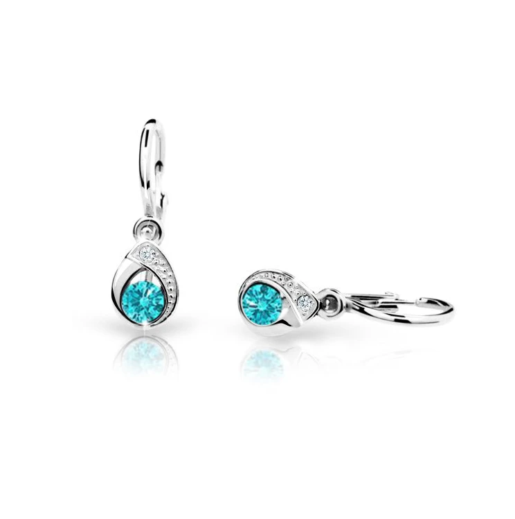 Dětské náušnice z bílého zlata 585/1000. Náušničky mají zapínání na dětskou brizuru. Toto zapínání je zkonstruované právě pro dětské náušnice a zamezuje jeho nechtěnému rozevření a následné ztrátě náušničky. Rozměry náušniček 13mm x 6,4mm x 4,2mm najdete zobrazené na podpůrné fotografii. Náušničky jsou ozdobené zářivými zirkony.