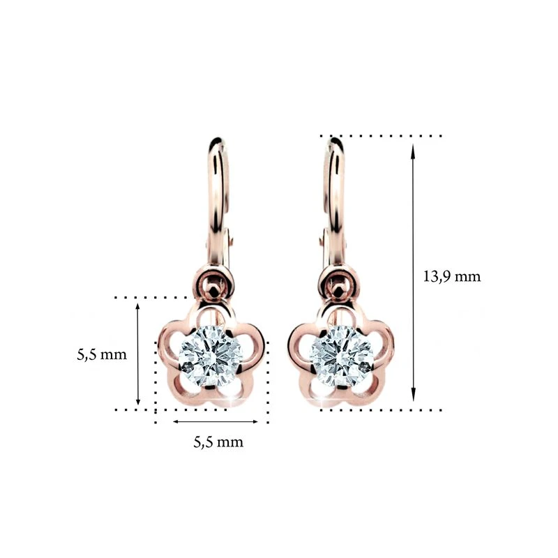 Dětské náušnice kytičky vyrobené ze 14. ti karátového zlata. Náušnice jsou navržené a vyrobené s ohledem na komfortní a bezpečné užívání pro miminka od nejútlejšího věku. Zapínání náušniček na dětskou brizuru zamezuje jejich snadnému otevření a následné ztrátě dětské náušničky. Kytička má rozměr 5,5×5,5 mm, celková „výška“ náušničky 13,9 mm.