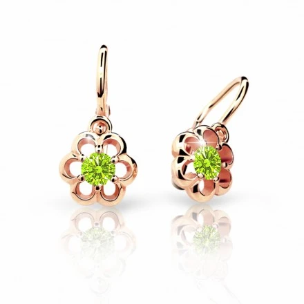Dětské náušnice vyrobené ze 14 karátového zlata. Náušnice jsou navržené a vyrobené s ohledem na komfortní a bezpečné užívání pro miminka od nejútlejšího věku. Zapínání náušniček na dětskou brizuru zamezuje jejich snadnému otevření a následné ztrátě dětské náušničky. Ozdoba se zirkony má rozměr 6,5 ×6,7 mm, celková „výška“ náušničky 14,2 mm.