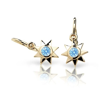 Dětské náušnice ze zlata 585/000. Nádherné náušničky proděti se zapínáním na dětskou brizuru, která zamezuje snadnému otevření zapínání a případné ztrátě náušnce Vaší malé parádnice. Luxusní vzhled dětských náušnic je podtržený zářivými kamínky. Všechny dětské šperky od Cutie Jewellery jsou vyráběné České republice a dnes jsou tyto šperky známé téměř po celém světě. Tak jako všechny zlaté šperky jsou také tyto náušničky pro miminka opuncované dle puncovního zákona. K náušničkám patří originální krabička Cutie Jewellery.