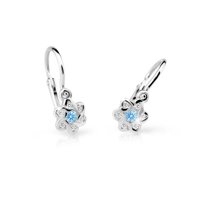 Dětské náušnice vyrobené ze 14ti karátového zlata se zirkony. Náušnice jsou navržené a vyrobené s ohledem na komfortní a bezpečné užívání pro miminka od nejútlejšího věku. Zapínání náušniček na dětskou brizuru zamezuje jejich snadnému otevření a následné ztrátě dětské náušničky. Kytička se zirkony má rozměr 5,8×5,2 mm, celková „výška“ náušničky 14 mm. Rozměry náušniček najdete zobrazené na přehledném podpůrném obrázku.