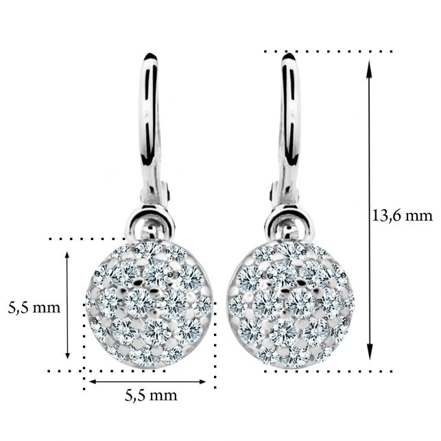 Dětské náušnice vyrobené ze zlata 585/000. Náušnice jsou navržené a vyrobené s ohledem na komfortní a bezpečné užívání pro miminka od nejútlejšího věku. Zapínání náušniček na dětskou brizuru zamezuje jejich snadnému otevření a následné ztrátě dětské náušničky. Ozdoba se zirkony má rozměr 5,5×5,5 mm, celková „výška“ náušničky 13,6 mm. Rozměry náušniček najdete přehledně zobrazené na podpůrné fotografii.