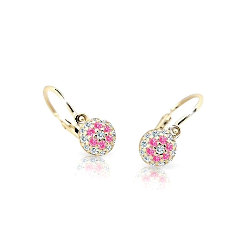 Dětské náušnice vyrobené ze 14 karátového zlata. Náušnice jsou navržené a vyrobené s ohledem na komfortní a bezpečné užívání pro miminka od nejútlejšího věku. Zapínání náušniček na dětskou brizuru zamezuje jejich snadnému otevření a následné ztrátě dětské náušničky. Ozdoba se zirkony má rozměr 5,5×5,5 mm, celková „výška“ náušničky 13,6 mm. Rozměry náušniček najdete na přehledné podpůrné fotografii.