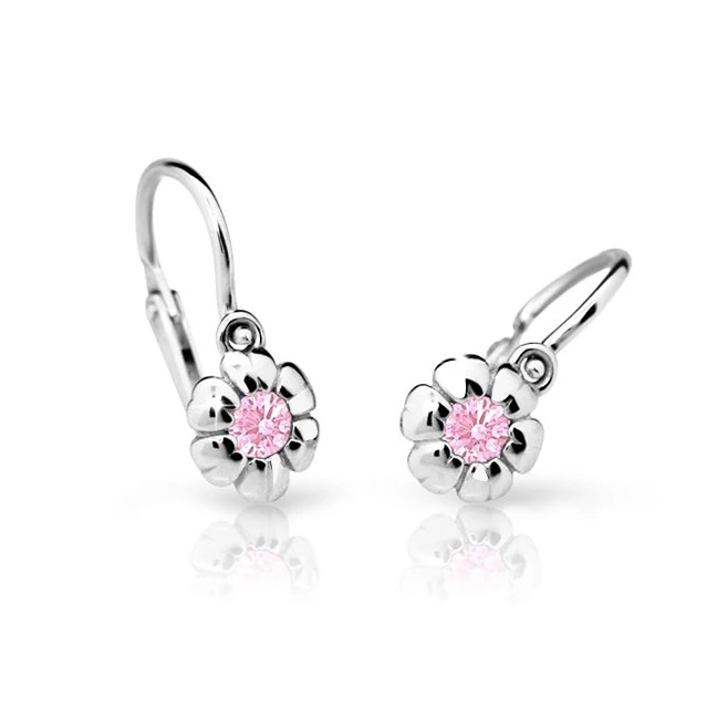 Dětské náušnice z bílého zlata ryzosti 585/000. Povrch náušnic je leštěný. Náušnice s ozdobou květu. Ve středu květu je kamínek. Rozměry náušniček najdete zobrazené na podpůrné fotografii. Náušnice mají bezpečnostní zapínání na dětskou brizuru. Krásné zlaté dětské náušnice od českého výrobce CUTIE JEWELLERY. Uvedená cena za 1 pár.