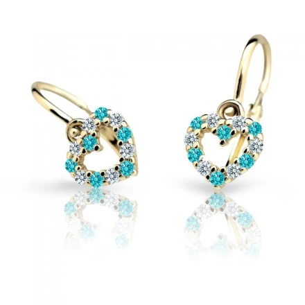 Dětské náušnice srdíčka vyrobené ze 14 karátového zlata. Náušnice jsou navržené a vyrobené s ohledem na komfortní a bezpečné užívání pro miminka od nejútlejšího věku. Zapínání náušniček na dětskou brizuru zamezuje jejich snadnému otevření a následné ztrátě dětské náušničky. Srdíčko se zirkonem má rozměr 6,5×6,0 mm, celková „výška“ náušničky 14,2 mm.