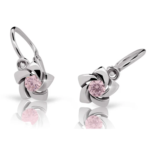 Dětské visící náušnice z bílého zlata ryzosti 585/000. Povrch náušnic je leštěný. Náušnice je zdobená kvítkem s kamínkem. Průměr náušnic: 14mm, rozměr ozdoby 7 * 2mm. Náušnice mají bezpečnostní dětské zapínání. Krásné dětské náušnice od českého výrobce Cutie Jewellery. Uvedená cena za 1 pár.