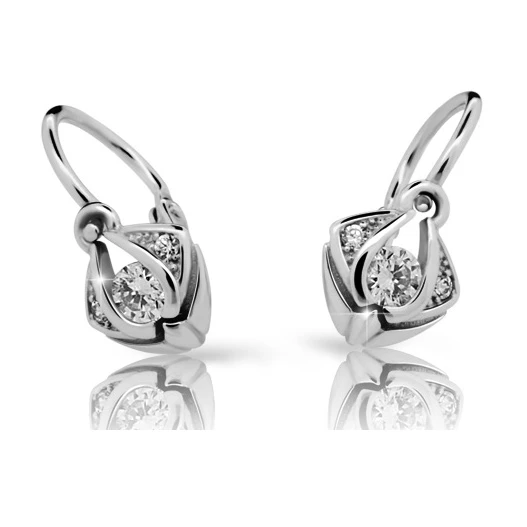 Dětské náušnice z bílého zlata ryzosti 585/000. Povrch náušnic je leštěný. Náušnice je zdobená kamínky. Průměr náušnic: 14mm, rozměr ozdoby 6 * 2mm. Náušnice mají bezpečnostní dětské zapínání. Krásné dětské náušnice od českého výrobce Cutie Jewellery. Uvedená cena za 1 pár.