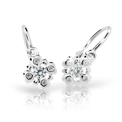 Dětské náušnice z bílého zlata ryzosti 585/000. Povrch náušnic je leštěný. Náušnice jsou ozdobené zirkony. Rozměr náušnic: 14*6mm. Náušnice mají bezpečnostní dětské zapínání. Krásné dětské náušnice od českého výrobce CUTIE JEWELLERY.