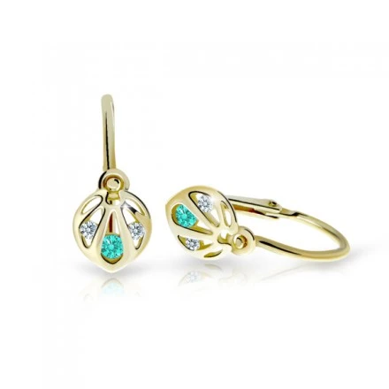 Dětské náušnice vyrobené ze 14 karátového zlata. Náušnice jsou navržené a vyrobené s ohledem na komfortní a bezpečné užívání pro miminka od nejútlejšího věku. Zapínání náušniček na dětskou brizuru zamezuje jejich snadnému otevření a následné ztrátě dětské náušničky. Ozdoba se zirkony má rozměr 6,0×5,5 mm, celková „výška“ náušničky 13,0 mm.