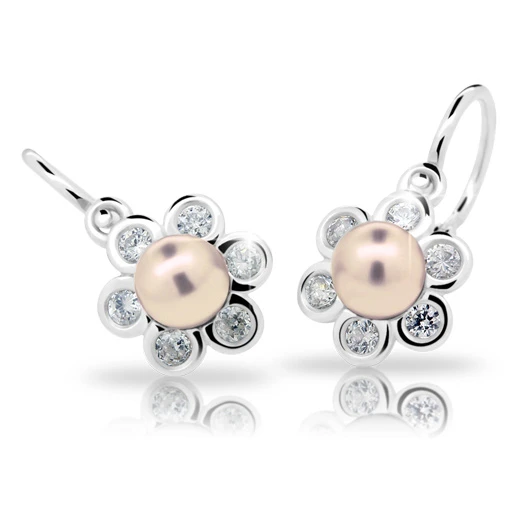 Dětské stříbrné náušnice s perličkou Swarovski a zirkony.