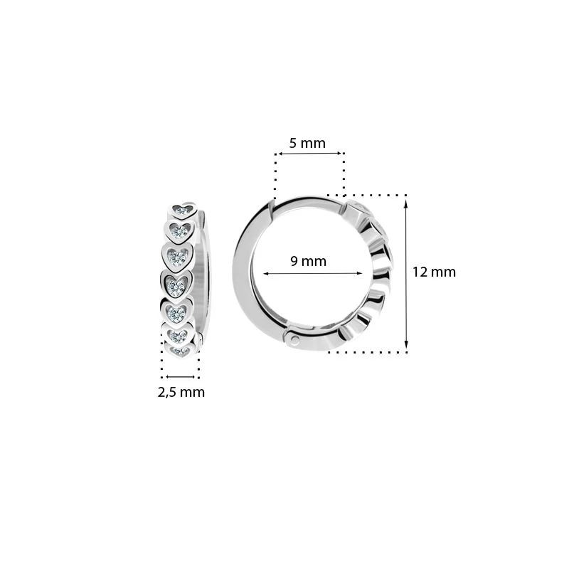Dětské náušnice z bílého zlata ve tvaru kroužku. Praktický kruhový tvar dětských náušniček je zárukou jejich pohodlného užívání jak pro miminka tak pro větší parádnice školou povinné. Vnější průměr náušniček 12 mm, vnitřní průměr 9 mm. Kroužky jsou široké 2,5 mm. Dřík zapínání je dlouhý 5 mm.