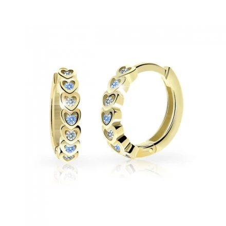 Dětské náušnice ze žlutého zlata ve tvaru kroužku. Praktický kruhový tvar dětských náušniček je zárukou jejich pohodlného užívání jak pro miminka tak pro větší parádnice školou povinné. Vnější průměr náušniček 12 mm, vnitřní průměr 9 mm. Kroužky jsou široké 2,5 mm. Dřík zapínání je dlouhý 5 mm.
