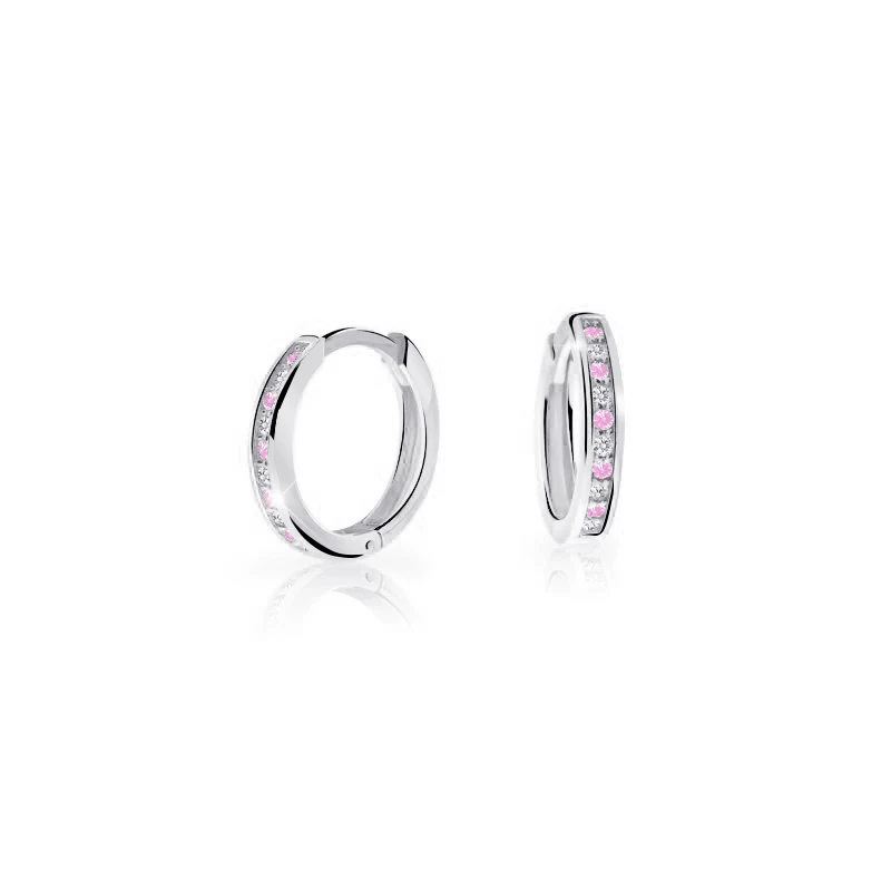 Dětské náušnice z bílého zlata 585/000 ve tvaru kroužku. Praktický kruhový tvar dětských náušniček je zárukou jejich pohodlného užívání jak pro miminka tak pro větší parádnice školou povinné. Vnější průměr náušniček 12 mm, vnitřní průměr 9 mm. Kroužky jsou široké 2,0 mm. Dřík zapínání je dlouhý 5 mm.