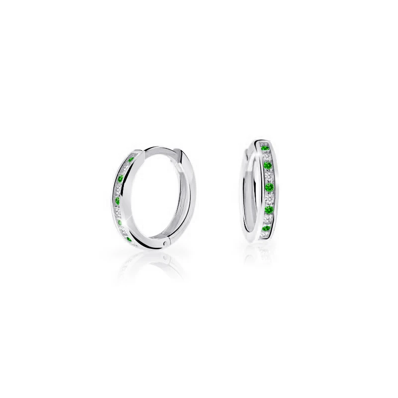 Dětské náušnice z bílého zlata 585/000 ve tvaru kroužku. Praktický kruhový tvar dětských náušniček je zárukou jejich pohodlného užívání jak pro miminka tak pro větší parádnice školou povinné. Vnější průměr náušniček 12 mm, vnitřní průměr 9 mm. Kroužky jsou široké 2,0 mm. Dřík zapínání je dlouhý 5 mm.