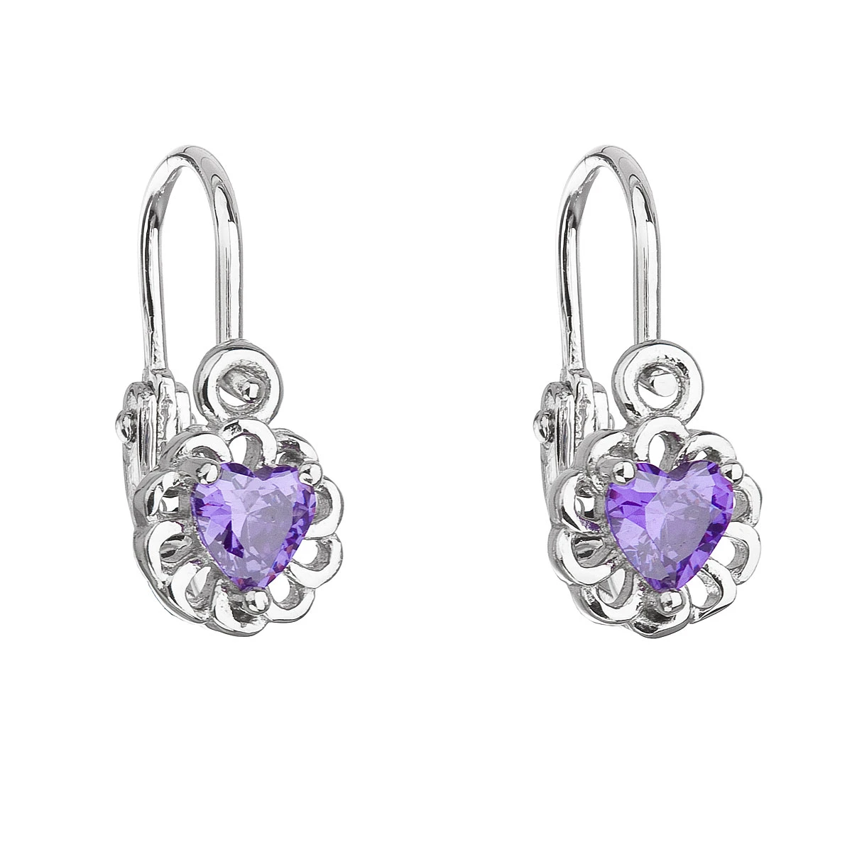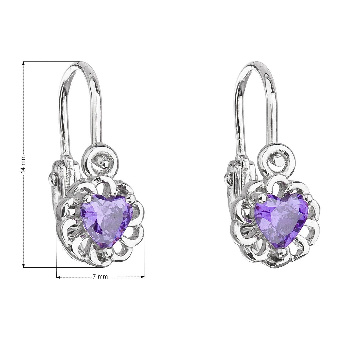 Dětské náušnice se zirkony srdíčka 11173.3 Fialová