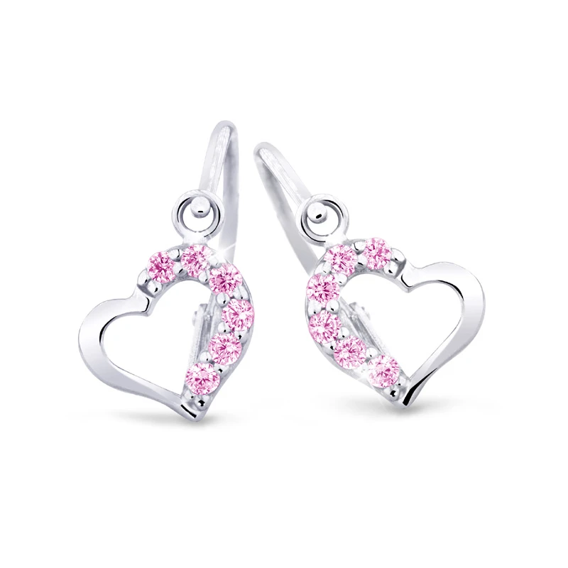Dětské náušnice z bílého zlata srdíčka C2757B-Pink