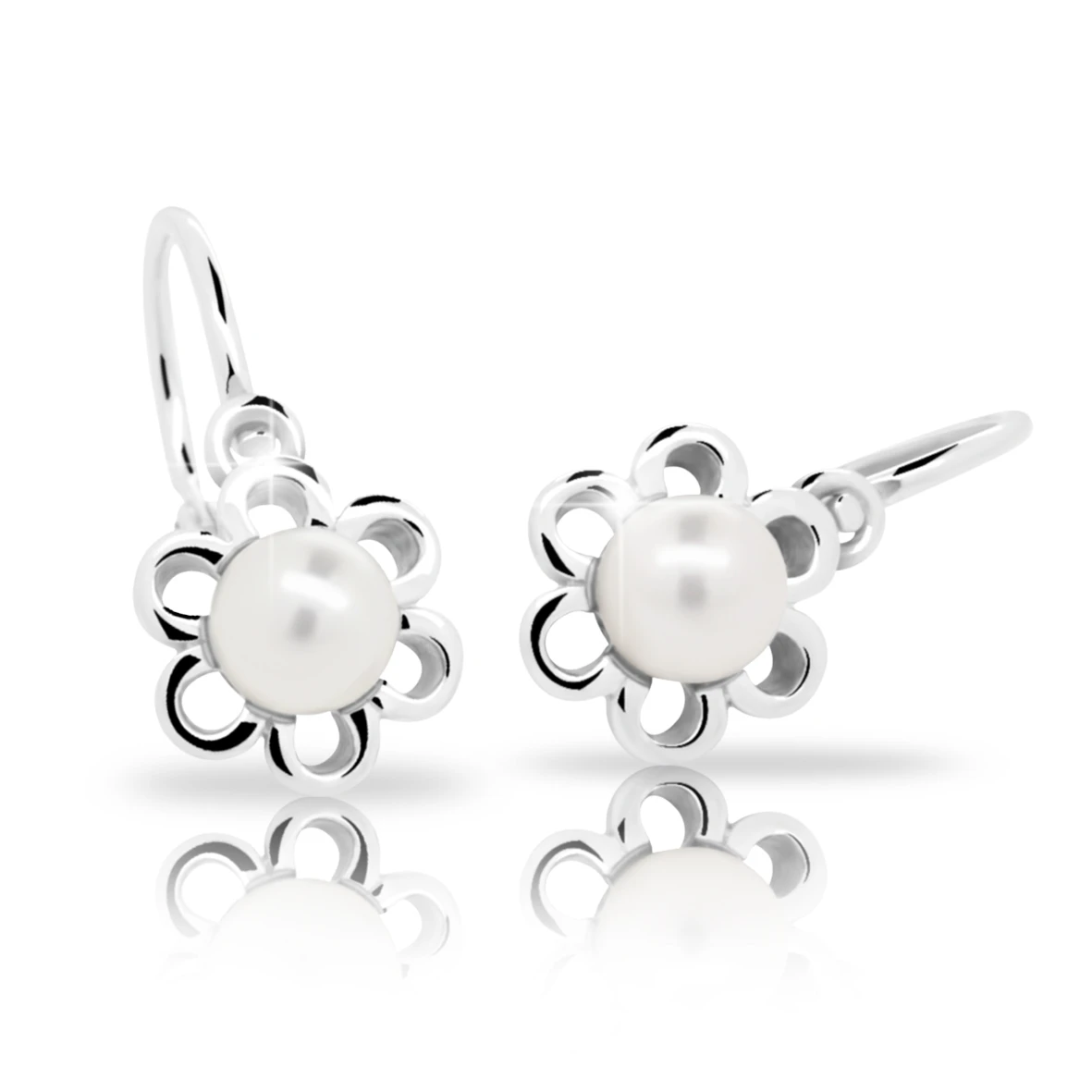 Dětské náušnice ze stříbra ryzosti 925/1000. Náušničky jsou ozdobené umělými perličkami Swarovski a představují tak jedinečnou ozdobu každé malé princezny. Dětské náušnice s bezpečnostním zapínáním na dětskou brizuru. Průměr ozdoby s perličkou 7mm, výška náušničky 14mm.