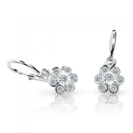 Dětské náušnice kytičky vyrobené z bílého zlata. Náušnice jsou navržené a vyrobené s ohledem na komfortní a bezpečné užívání pro miminka od nejútlejšího věku. Zapínání náušniček na dětskou brizuru zamezuje jejich snadnému otevření a následné ztrátě dětské náušničky. Kytička má rozměr 6,2×5,7 mm, celková „výška“ náušničky 13,2 mm.