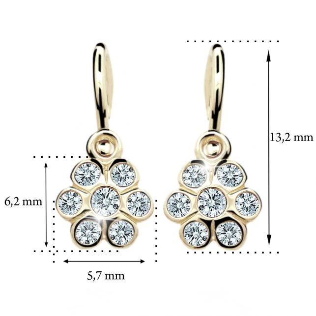 Dětské náušnice kytičky vyrobené ze 14 karátového zlata. Náušnice jsou navržené a vyrobené s ohledem na komfortní a bezpečné užívání pro miminka od nejútlejšího věku. Zapínání náušniček na dětskou brizuru zamezuje jejich snadnému otevření a následné ztrátě dětské náušničky. Kytička má rozměr 6,2×5,7 mm, celková „výška“ náušničky 13,2 mm. Náušničky pro děti Cutie jsou dodávané v dárkové krabičce ve tvaru pyramidy.