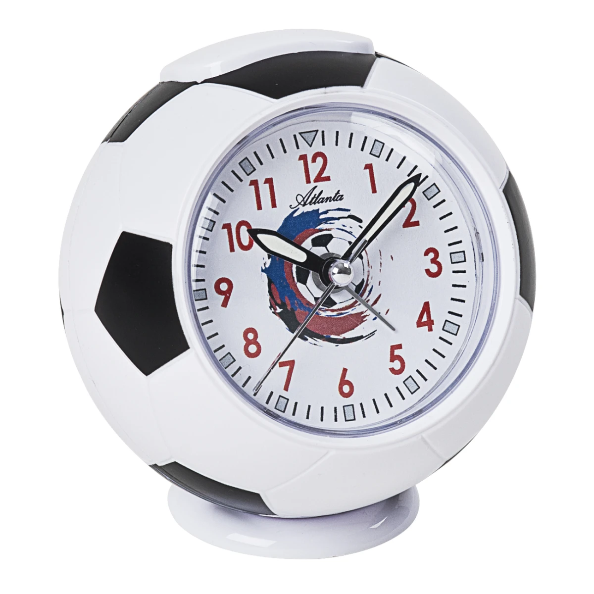 Dětský budík pro malé fotbalisty. Budík má hodinovou, minutovou a vteřinovou ručku. Stlačením tlačítka na vršku budíku dojde k osvětlení ciferníku. Budík má funkci alarmu. Spuštěný alarm hraje pípá. Průměr ciferníku 63 mm. Výška budíku 100 mm, šířka 90 mm, hloubka 80mm. Pohon budíku je bateriový na baterii typu AA. Baterie je součástí balení.