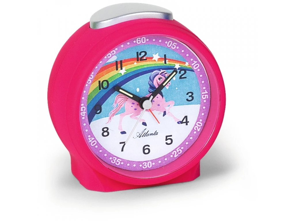 Budík pro děti s bateriovým pohonem. Hezký dětský budík, který kromě ukazatele času a alarmu může plnit funkci vkusného doplňku do dětského pokojíčku.