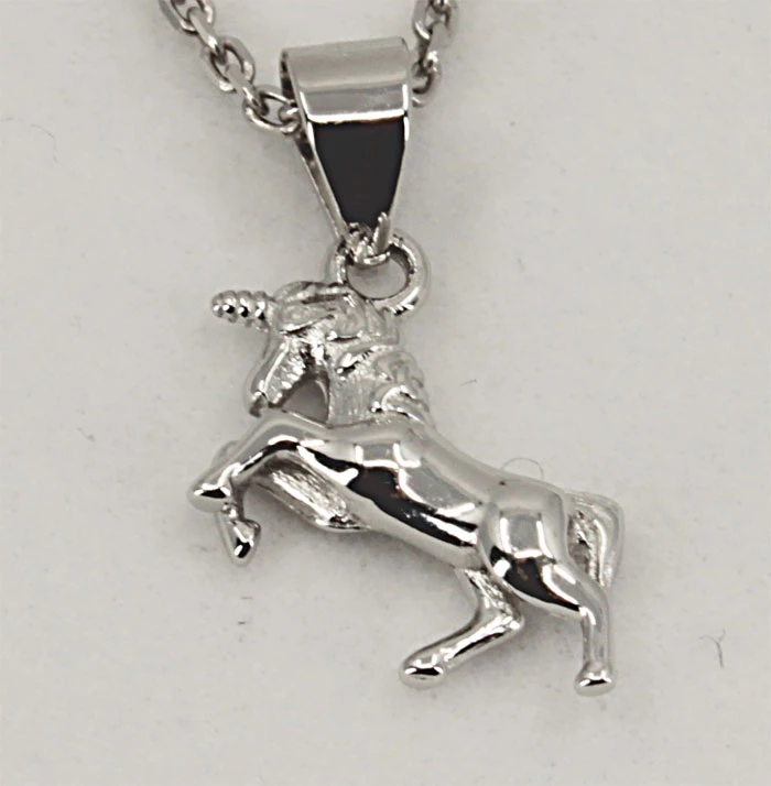 Přívěsek na řetízek jednorožec vyrobený ze stříbra 925/1000. Povrch přívěsku je porhodiovaný. Úprava rhodiováním dodává přívěsku jasnou barvu s leskem, zvyšuje odolnost povrchu proti poškrábání a zamezuje přirozené oxidaci stříbra. Přívěsek bude mít po dlouhou dobu bezvadný vzhled. Rozměr jednorožce 12x14 mm. Závěsným očkem na přívěsku lze provléct stříbrný řetízek s průměrem do 2,5 mm.