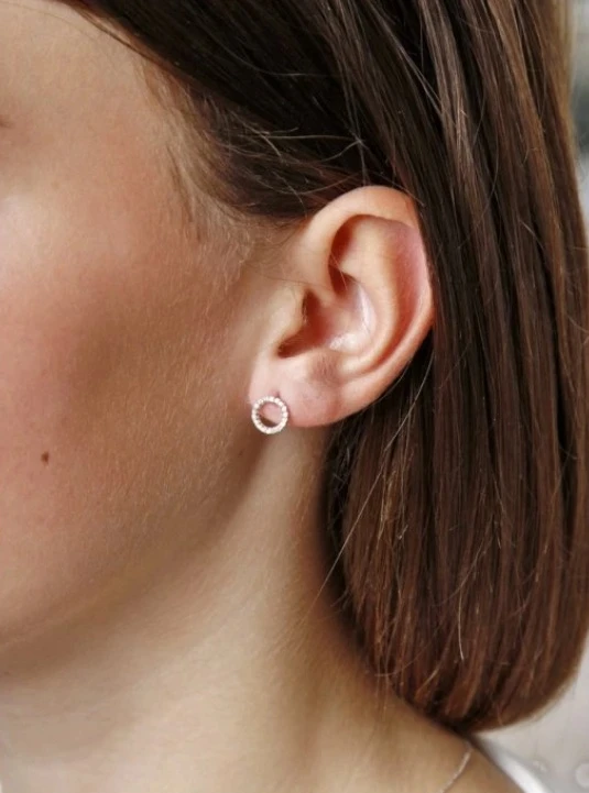 Dámské náušnice z bílého 14.ti karátového zlata na šroubek osazené pravými certifikovanými diamanty. Rozměry náušnic najdete vyobrazené na podpůrné fotografii. Diamanty zasazené v náušnicích mají hmotnost 0,144 ct. Kvalita diamantů SI1, barva G je hodnocena na základě tvz, 4C tříd: