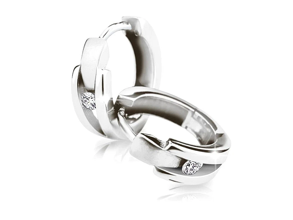 Diamantové náušnice kroužky z bílého zlata 585/1000 osazené pravými certifikovanými diamanty. Rozměry náušnic najdete vyobrazené na podpůrné fotografii. Diamanty zasazené v náušnicích mají hmotnost 0,200 ct. Kvalita diamantů SI1, barva G je hodnocena na základě tvz, 4C tříd: