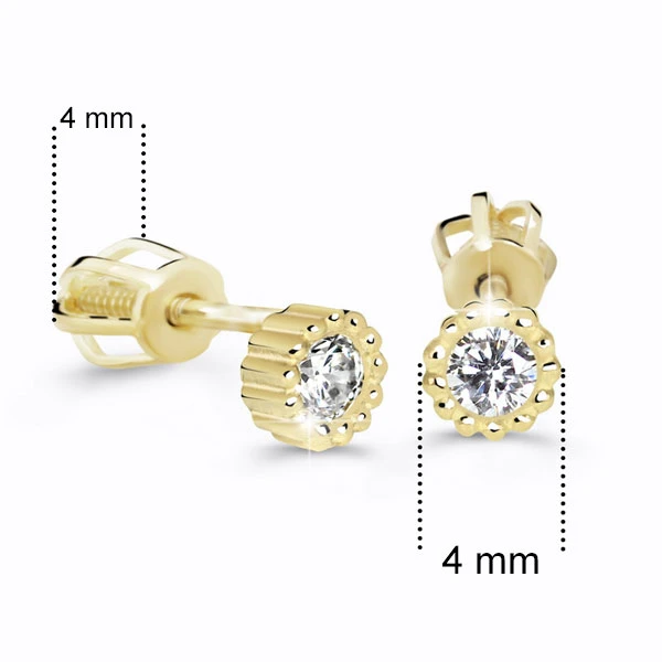 Náušnice pecky z růžového zlata 585/1000 na šroubek osazené pravými certifikovanými diamanty. Rozměry náušnic najdete vyobrazené na podpůrné fotografii. Diamanty zasazené v náušnicích mají hmotnost 0,200 ct. Kvalita diamantů SI1, barva G je hodnocena na základě tvz, 4C tříd: