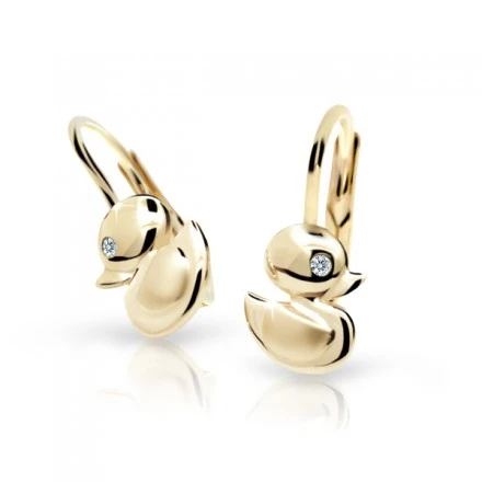 Dětské náušnice kachničky vyrobené ze 14 karátového zlata. Náušnice jsou navržené a vyrobené pro větší dívenky. Zapínání je na praktickou klapku. Káčátko má rozměr 8×7 mm, celková „výška“ náušničky 15 mm.