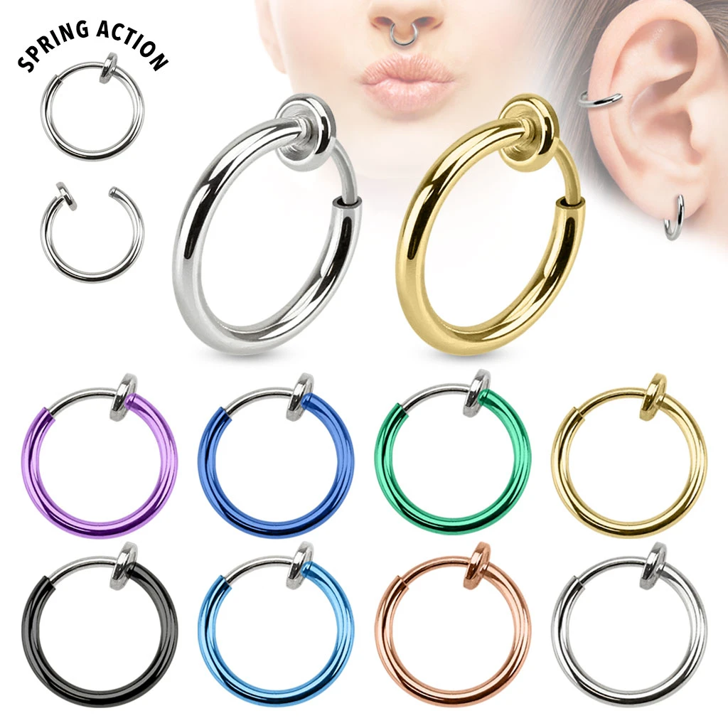 Falešný piercing do nosu z chirurgické oceli. Průměr dříku 1,5mm, vnější průměr piercingu 13mm.