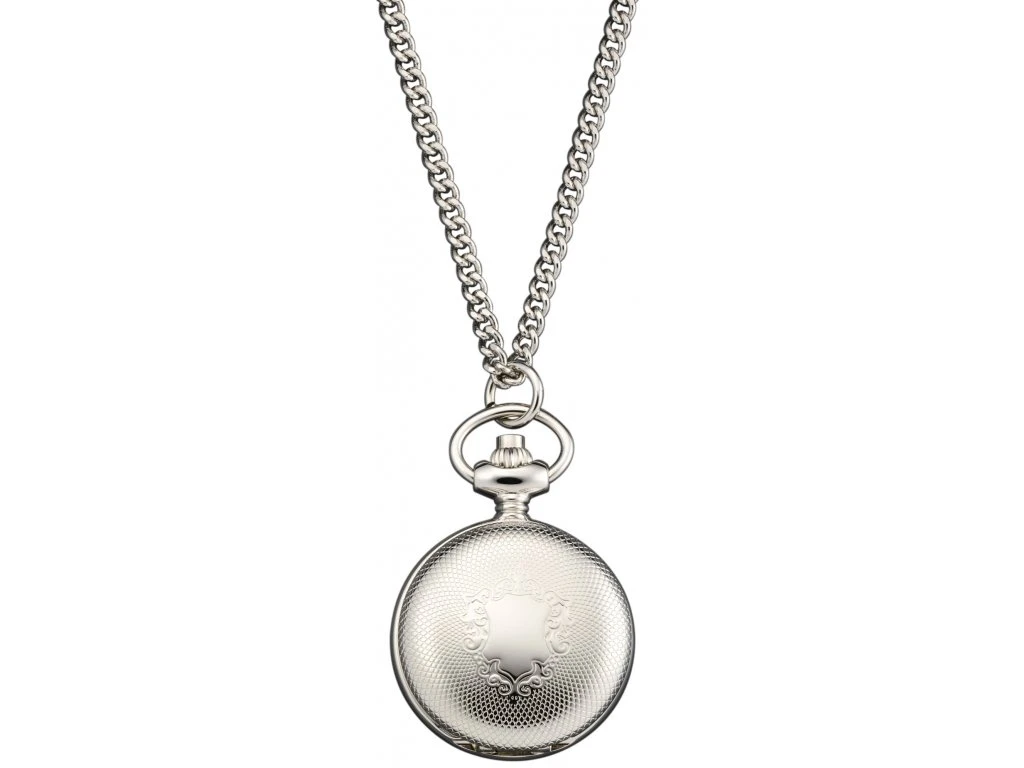 Dámské hodinky na řetízku. Kovové tělo hodinek má průměr 26mm, sklíčko hodinek je plastové. Hodinky mají bílý ciferník s římským číselníkem, hodinovou a minutovou ručku. Provoz hodinek zajišťuje spolehlivý bateriový strojek Miyota 2025. Kovový řetízek se zapínáním na karabinu je dlouhý 70cm a hodinky tak lze pohodlně převléct přes hlavu bez nutnosti manipulace s karabinkou. Do erbu na víčku hodinek lze vyrýt např. monogram.