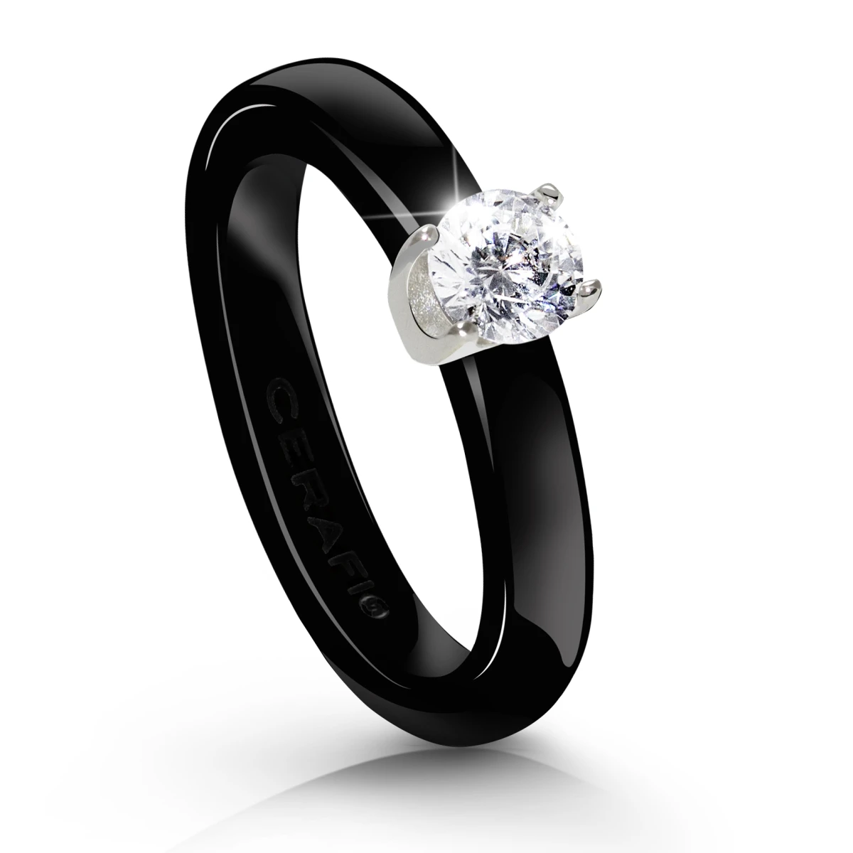 Keramický prsten se zirkony Cerafi FIDANZAMENTO NERO 128