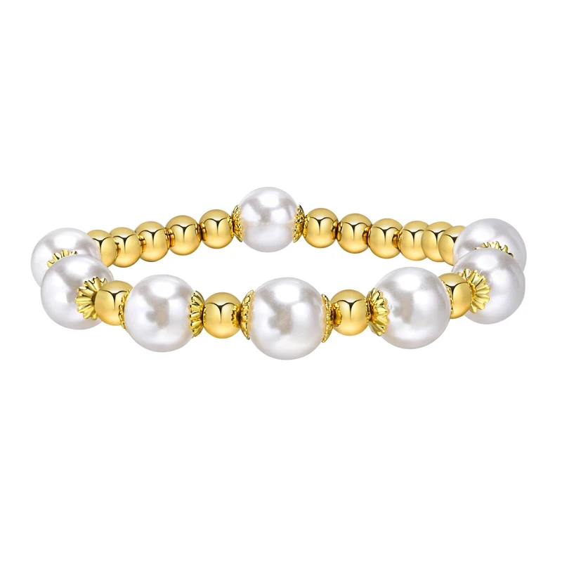 Moderní pružný kuličkový náramek z chirurgické oceli a umělých perel.