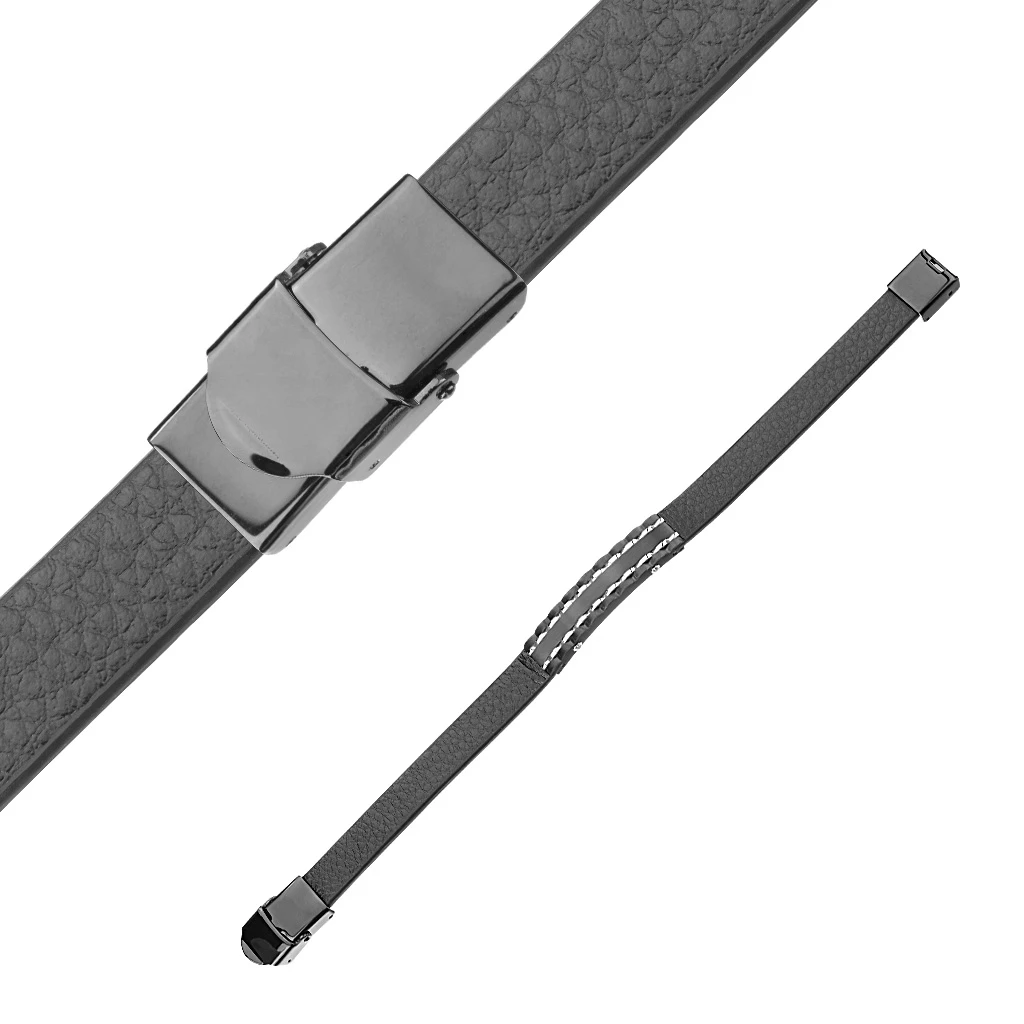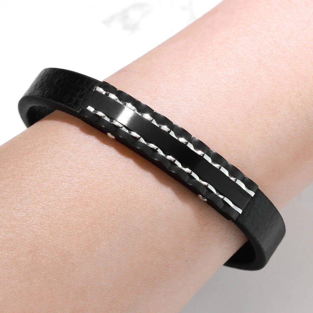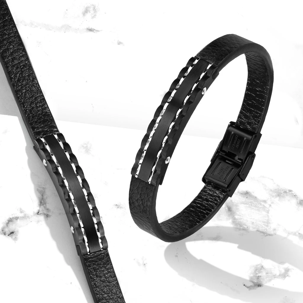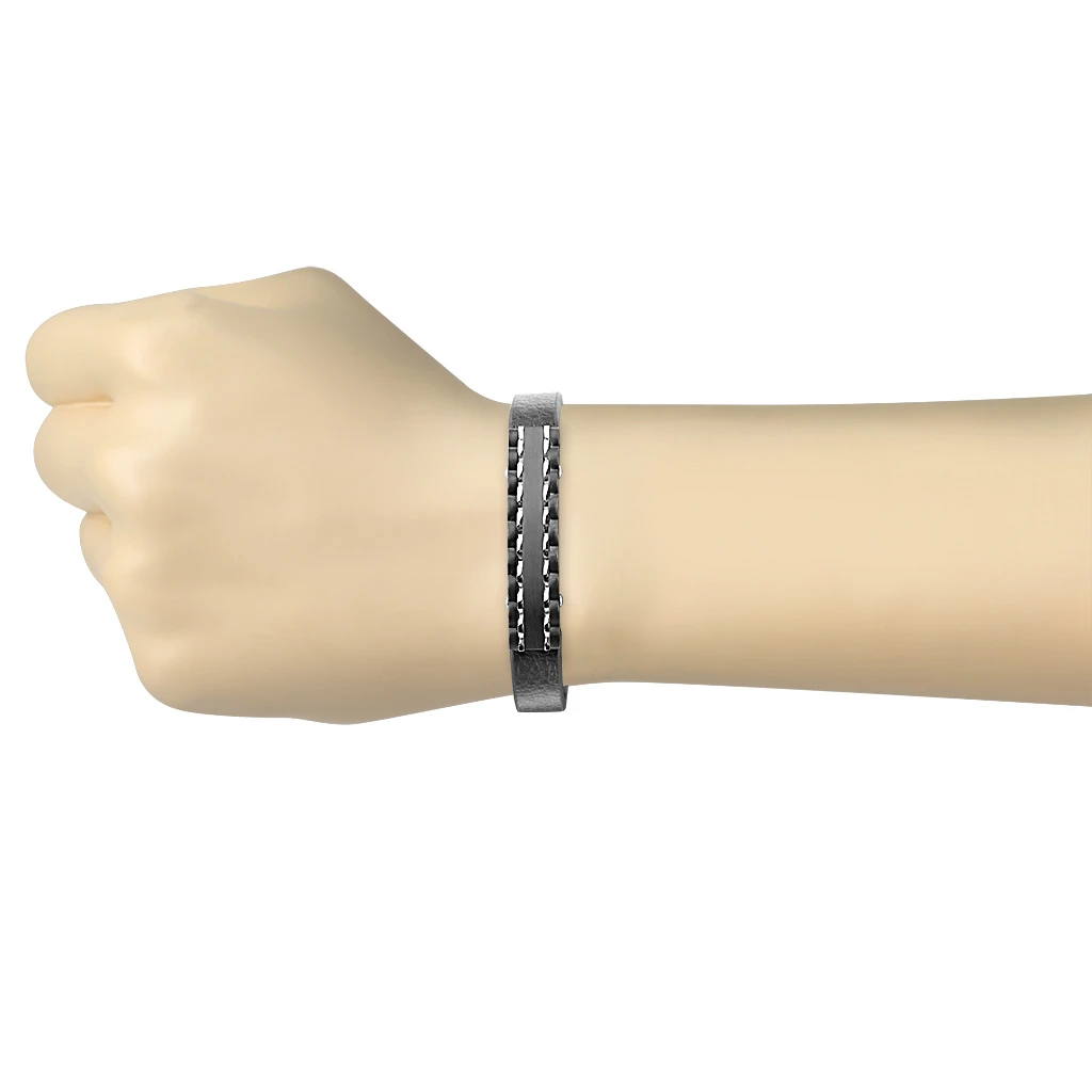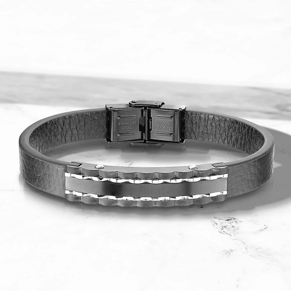 Luxusní pánský náramek, který spojuje pravou kůži a chirurgickou ocel v elegantní celek.
