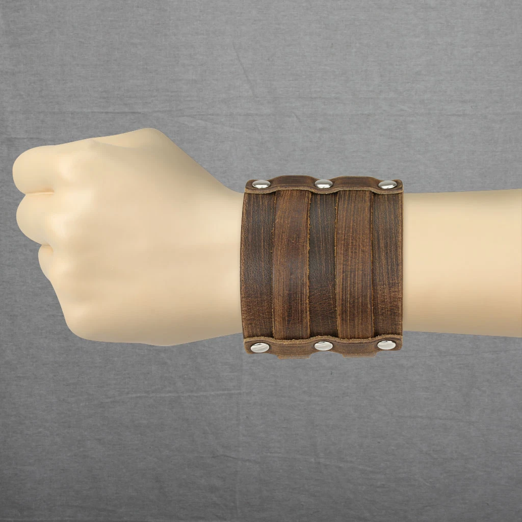 Pánský kožený náramek s dvojitým zapínáním. Nátepník je široký 68mm. Dvojité zapínání na jednoduchou přezku lze zapínat na úrovni délek 20,21,22,23,24cm.