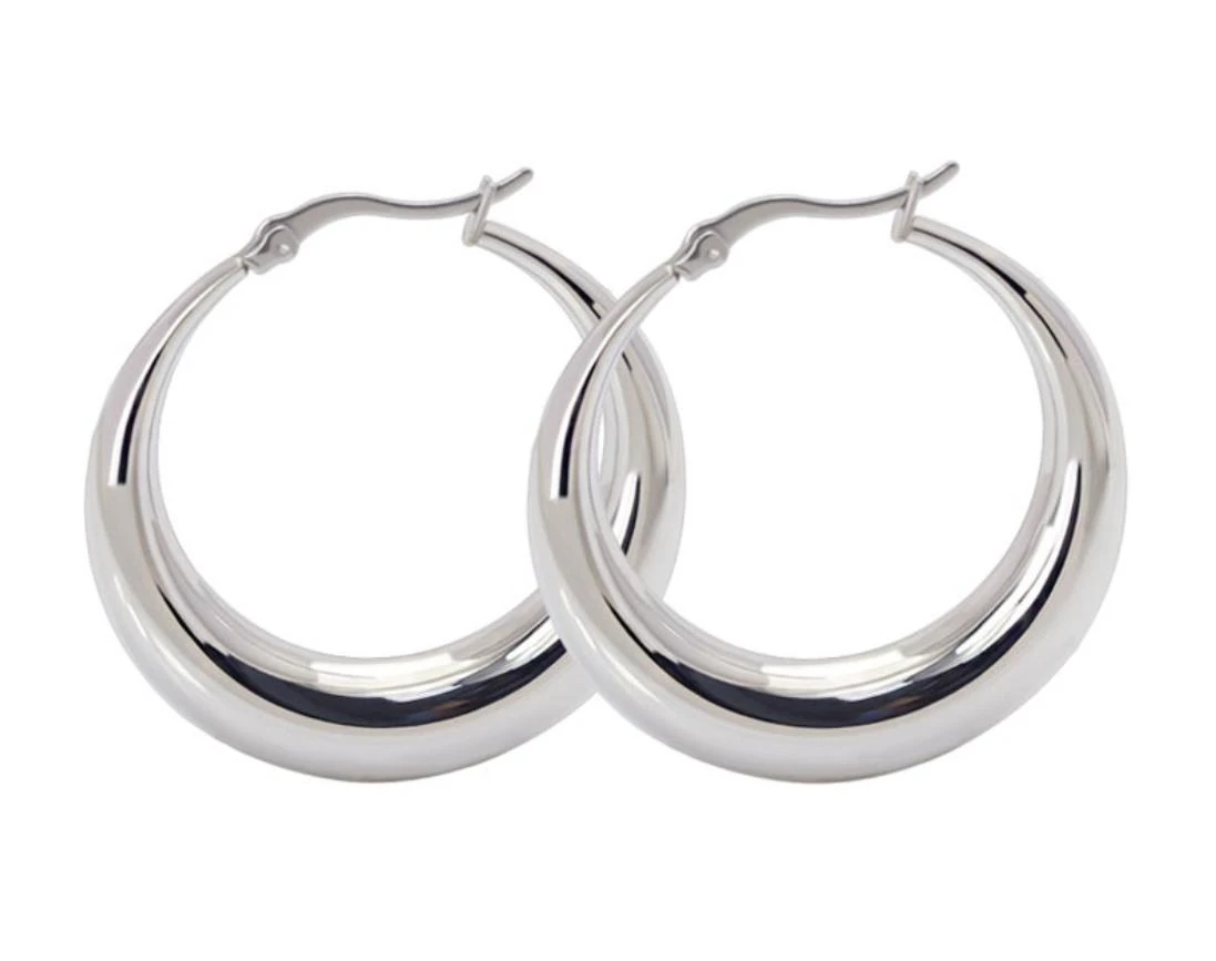 Kruhové náušnice z chirurgické oceli. Povrch náušnic je leštěný. Zapínání náušnic je na francouzský zámek. Váha každé náušnice 6,0g.