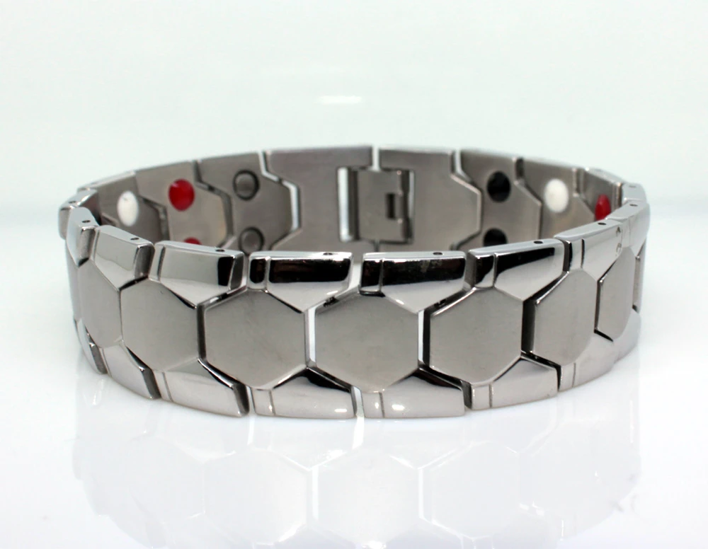 Magnetický náramek na paži z chirurgické oceli. Jako všechny šperky zhotovené z materiálu chirurgická ocel, je také tento náramek odolný proti poškození, nevyvolává magnetické reakce, neoxiduje, chirurgická ocel nemění barvu. Díky těmto vlastnostem a přijatelné ceně se ocelové šperky těší stále značně vysoké popularitě ve stále se rozšiřujících řadách spokojených uživatelů.