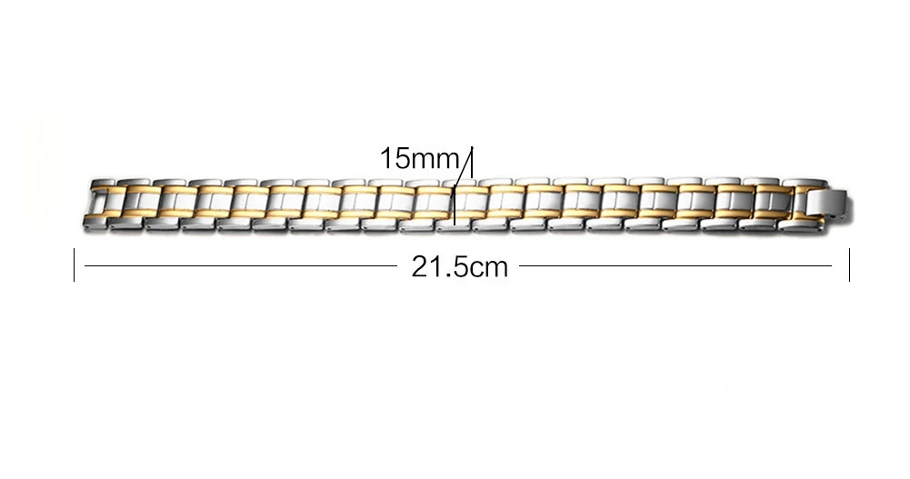 Náramek z chirurgické oceli pro muže. Magnetický náramek se zlatými linkami. Linky jsou upravené zlatou IP barvou.Povrch náramku je leštěný. Náramek je dlouhý 21,5 cm. Šířka náramku 15 mm.