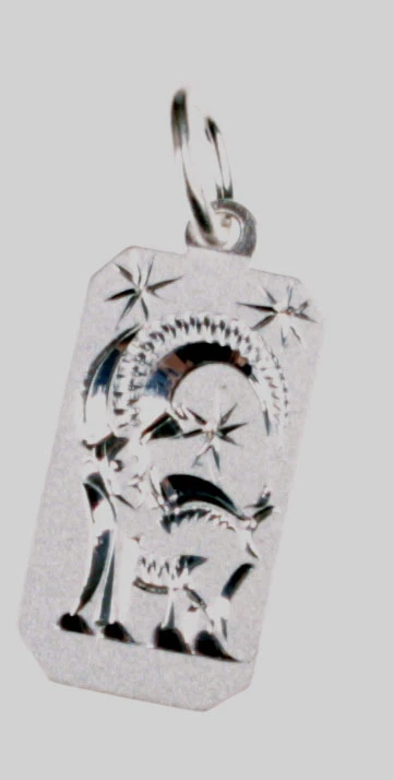 Měsíční znamení ze stříbra 925/000. Rozměr znamení 15×8mm. Motiv znamení je vyrytý. Povrch je porhodiovaný. Závěsné očko je vhodné pro stříbrný řetízek s průměrem do 2,0mm.